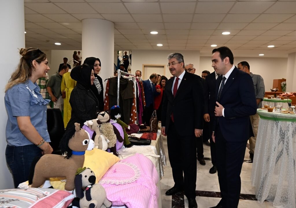 AİLE DESTEK MERKEZİ (ADEM) PROJESİ KURSİYERLERİNİN EL EMEĞİ ÜRÜNLERİNDEN OLUŞAN DÖNEM SONU SERGİSİNİN AÇILIŞINI VALİ DR. ERDİNÇ YILMAZ YAPTI