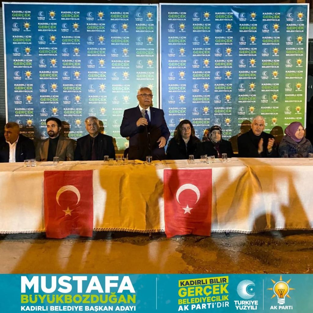 Ak Parti Seçim Koordinasyon Merkezi tarafından organize edilen ve Belediye Başkanı Mustafa Büyükbozduğan, İlçe Teşkilatı ve Belediye Meclis Üyesi adaylarının katıldığı toplantıların bugünkü durağı Şehit İbrahim Kundakçı Mahallesi oldu. Mahalle sakinlerinden ve önceki yönetim kurulu üyesi Mehmet Çetin ev sahipliğinde gerçekleşen toplantıya katılımın yoğun olduğu gözlemlendi. Konuşmalarda önce söz alan Yalçıner Karakuş 31 Mart Seçimlerinde sadece Belediyeyi değil Meclisin de büyük çoğunluğunu almayı hedeflediklerini ifade etti. Ardından söz alan Belediye Başkan Adayı Mustafa Büyükbozduğan ise Kadirli’nin sorunları bizimle tarih olacak yepyeni vizyonla yepyeni ekiple merkezi hükümetin de desteğiyle 31 Mart’ta çözümü sandık ve millet olarak işaret etti.