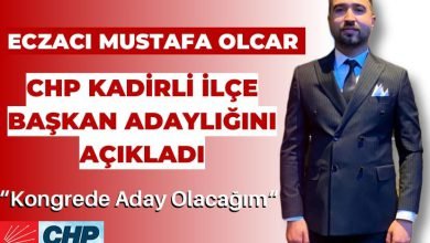 Eczacı Mustafa Mert Olcar, CHP Kadirli İlçe Başkanlığı’na adaylığını açıkladı.