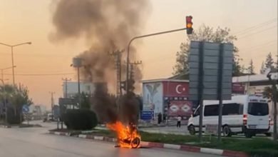 Adana yolu üzeri Kadir Traş Ekmek Fabrikası civarında seyir halindeki motosiklette henüz belirlenemeyen bir nedenle yangın çıktı..Motosiklet kullanılamaz hale geldi..…