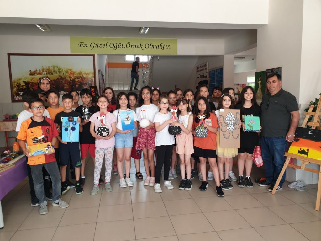 Öğrenciler, sınıf öğretmeni Ayşe Karakuş’un idaresinde görsel tasarım dersleri ve boş zamanlarında yaklaşık 5 ay süren çalışma sonucu yaptıkları oyuncak, resim ve dekoratif ürünleri okulda sergilemeye başladı.