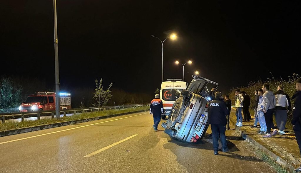 Çevre Yolunda Virajı Alamayan Otomobil Devrildi..
