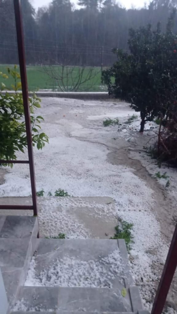 Tüm köyü kar yağmış gibi bembeyaz yapan dolu yaklaşık bir saat boyunca etkili oldu