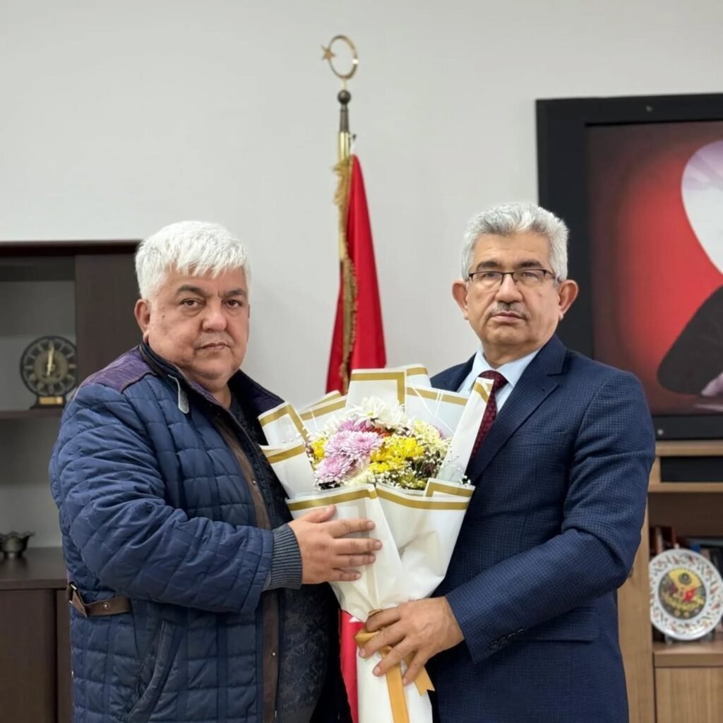 Kadirli ilçe Milli Eğitim Müdürü İlyas Tapsız, Prof.Dr.Halet Çambel İlkokulu Müdürü Tahir Tarhan ve Mustafa Konaklı İlk ve Ortaokuku Müdürü Adem Gök’e şükranlarını sunarak çiçek takdim etti.
