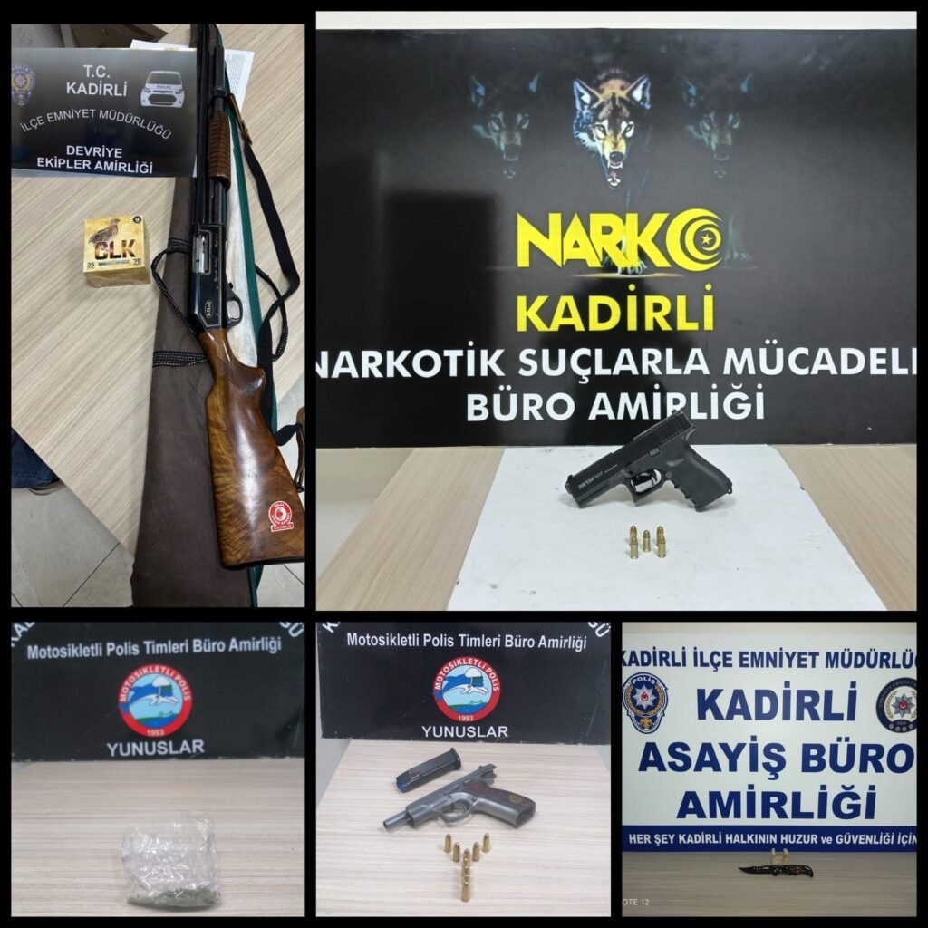 Kadirli ilçe emniyet müdürlüğü ekiplerince narkotik ve asayiş uygulamalarında yakalanan 14 zanlıdan 6’sı tutuklandı.