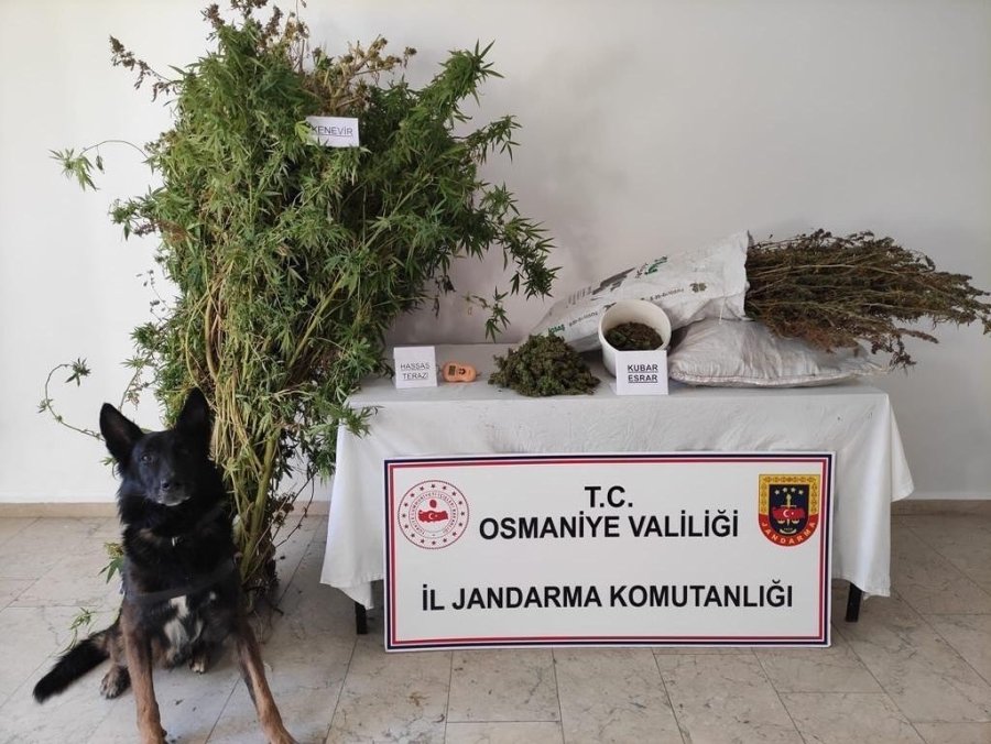 Osmaniye’de bir eve düzenlenen Jandarma operasyonunda esrar ve hammaddesi olan kenevir bitkisi ele geçirildi. Operasyonda hassas burunlu narkotik köpekleri de yer aldı.
