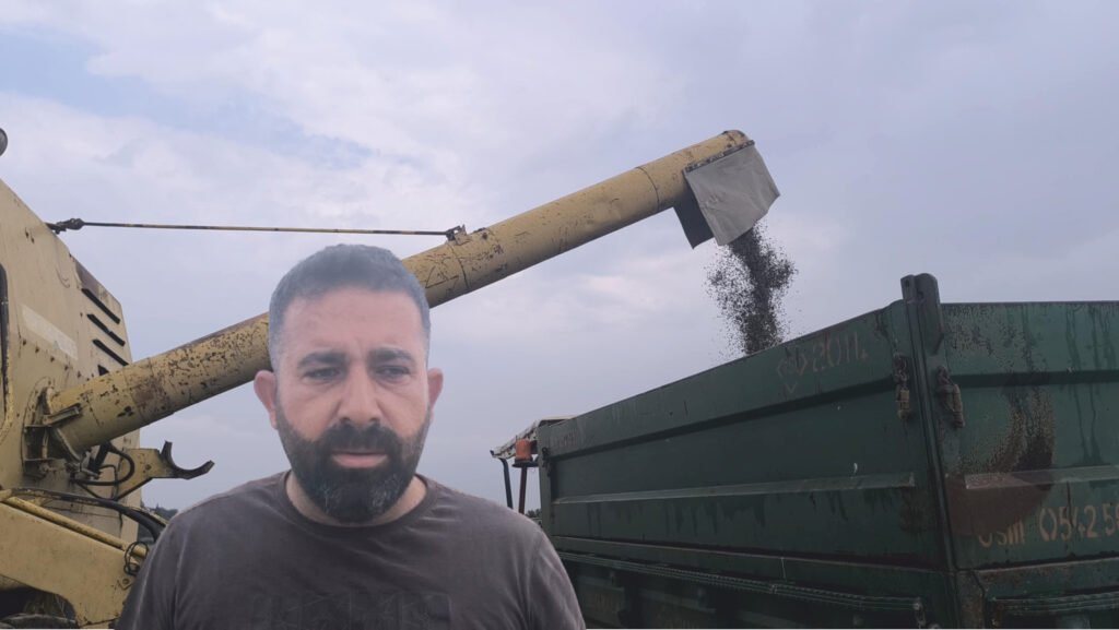 “2025 yılı ayçiçeği hasadına başladık ama ayçiçeğimiz bu durumda çok kötü. Kuraklıktan dolayı verim alamıyoruz bittik bu durumda. Şu an kellelerimiz bomboş. Bu sene çok zarar ettik. Buğday ektik buğdayı bozduk, yerine ayçiçeği ektik ayçiçeği de zarar, buğday da zarar bu sene, çiftçi kan ağlıyor. Bitik durumdayız. Şu şartlarda kilosu 25 liraya düşmemesi lazım. Şu an 22 lira falan diyorlarmış ama verim hiç yok. 50 kilo ile 100 kilo arasında oynuyor, burası 10 dekar. Şu an 15 bin liranın üzerinde, tabii gübresini falan saymıyoruz gübreyi de sayarsak 20 bin lirayı geçiyor masrafım. Taban gübresi, üstüne attığımız gübre zehirleri yani zarar, kökü zarar.