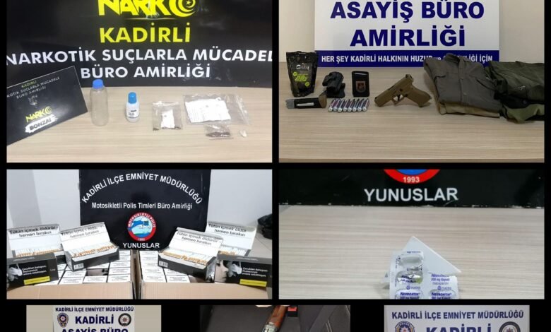 Osmaniye’nin Kadirli ilçesinde narkotik ve asayiş uygulamalarında gözaltına alınan 17 şüpheliden 10’u tutuklandı.