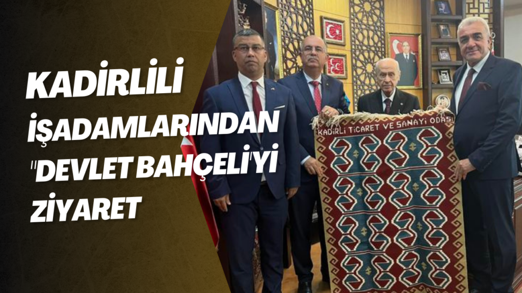 MHP Genel Başkanı Devlet Bahçeli’yi makamında ziyaret eden Kadirli Ticaret ve Sanayi Odası Başkanı Mehmethan Yüksel, yönetim kurulu üyeleri Mustafa Kollu ve Hakan Başdoğan, ilçe ile ilgili sunum yaparak hazırladıkları dosyayı teslim etti.
