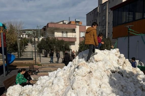 Belediye ekipleri tarafından Karataş Mahallesi Kale Park’a bir kamyon dolusu kar getirildi.