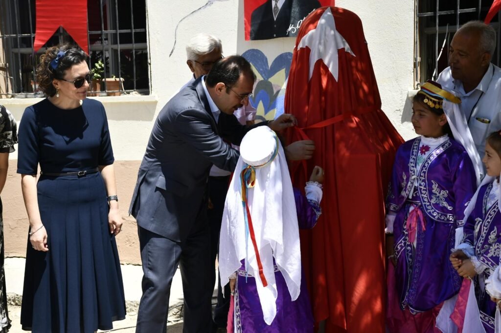Okulun bahçesine yapılan büst Kadirli Kaymakamı Sayın Erdinç DOLU ve öğrenciler tarafından alkışlarla açıldı.