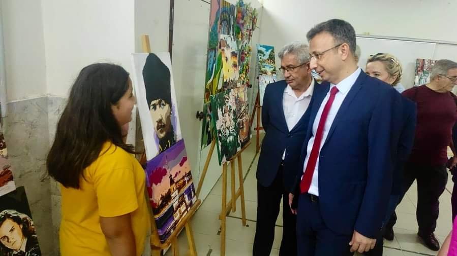 Kaymakam GÜNEY, öğrencilerle yaptıkları resimleri hakkında sohbet edip emeği geçen öğrenci ve öğretmenlere teşekkür etti.