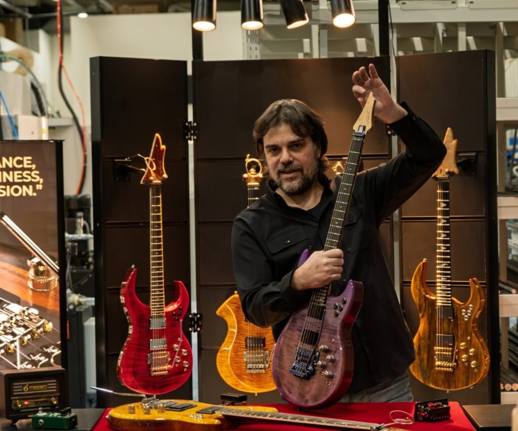Shark Guitars’ın Antalya’daki 1.600 metrekarelik fabrika alanına toplam 4 milyon 250 bin dolar yatırım yapıldığını açıklayan Köksal, “Geleneksel elektrogitarı 6 patentimizle yeniden tanımladık. Shark Guitars ‘ın her parçası değiştirilebilir ve özelleştirilebilir bir modüler yapıya sahip. Gitarı, tüm parçaların birbiriyle kusursuz uyum sağladığı bir sistem üzerine kurduk. Bu sistem gitaristlere değişim, hareket ve kişiselleştirme özgürlüğü sunuyor. Sistemin kusursuz çalışması için kritik aksamlarda titanyum kullanıyor ve en yeni teknolojiyle işliyoruz. Zımpara ve boya işlemlerini robotik sistemlerle gerçekleştiriyoruz. Hammadde olarak giren ahşap ve titanyum, işleniyor, kendi ürettiğimiz patentli elektronik aksamlarla birleşerek premium segment elektro gitar olarak çıkıyor. Uçtan uca, in-house, yerli elektro gitar üretimi yapıyoruz. Üretimi dışarıya vermeyi düşünmedik, çünkü bu teknolojilerin mucidi ve tek üreticisi biziz. Türk’ün adının, müzikle anılması insanlarımızın hoşuna gidiyor. Shark Guitars gittiği her yerde insanların gönlünü kazanıyor. Nihai hedefimiz dünya çapında lider bir premium gitar markası olmaktır. Ülkemizde her bireyin adından gururla bahsedeceği bir marka olacağız.” dedi.