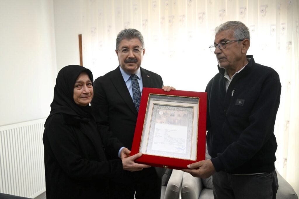 Şehidimize Allah’tan Rahmet dileyen Vali Dr. Erdinç Yılmaz, Şehidimizin Ailesine, Şehidimizin Şehadet Belgesini, Kur’an-ı Kerim ve Bayrağımızı takdim etti. Vali Yılmaz ziyareti sırasında yaptığı konuşmada, Şehidimize Allah’tan rahmet dileyerek, “Aziz Şehitlerimize olan borcumuzu hiçbir zaman ödeyemeyiz. Şehitlerimizin hatıralarını yaşatmak, ailelerinin yanında olmak hepimizin boynunun borcudur. Kapımız, gönlümüz Şehitlerimizin Ailelerine her daim açıktır. Şehidimize, Allah gani rahmet eylesin, mekânı cennet olsun. Bu vesile ile Şehitlerimize Allah’tan rahmet, ailelerine sabırlar diliyorum. ”diye konuştu.