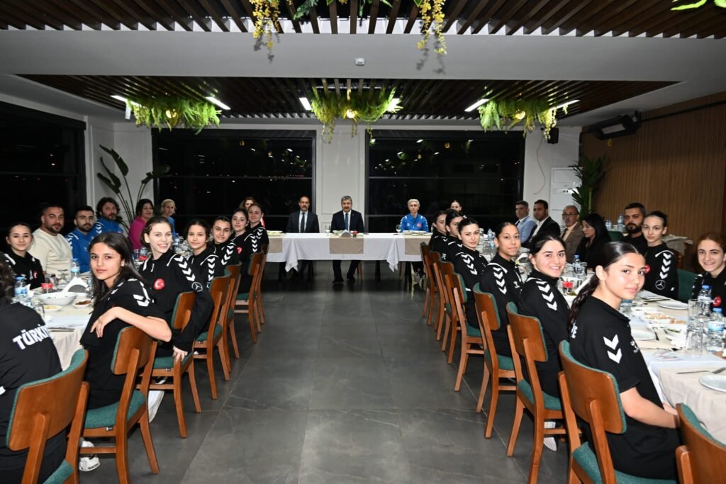 Osmaniye Valisi Dr. Erdinç Yılmaz, U17 Hentbol Bayan Milli Takımı ile moral yemeğinde buluştu. Vali, sporculara başarı dileyerek, “Sizlere güveniyoruz, gurur duyuyoruz. Şanlı Bayrağımızı Göklerde dalgalandırın” mesajı verdi.