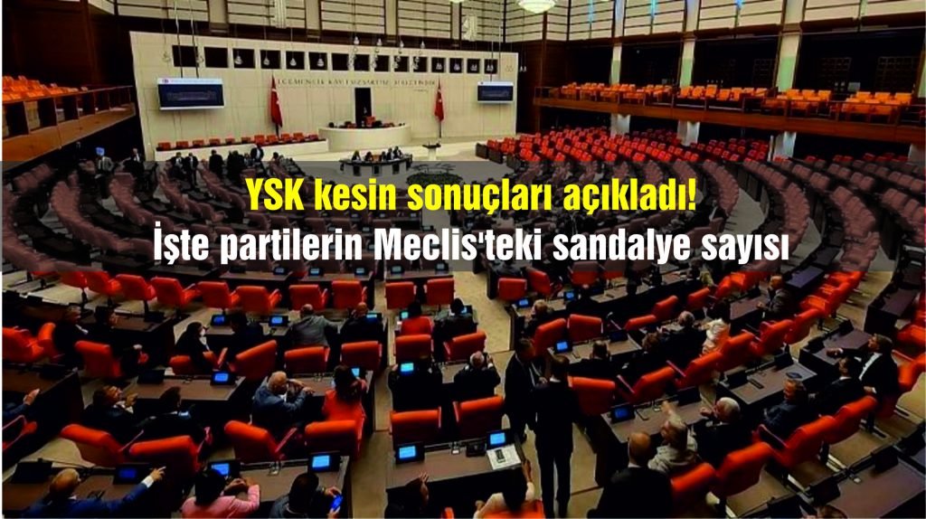Son dakika! YSK, milletvekili genel seçimlerinin kesin sonuçlarını açıkladı. Buna göre yeni dönemde AK Parti 268, CHP 169, Yeşil Sol Parti 61, MHP 50, İYİ Parti 43, Yeniden Refah Partisi 5, TİP ise 4 milletvekili ile TBMM’de temsil edilecek.